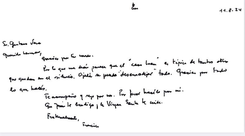 Este escenario dota de una vigencia dolorosa a la carta que el Papa Francisco envió a Gustavo Vera el 11 de agosto de 2024. Ya entonces, el Sumo Pontífice advertía que el caso corría el riesgo de quedar en el “silencio”: